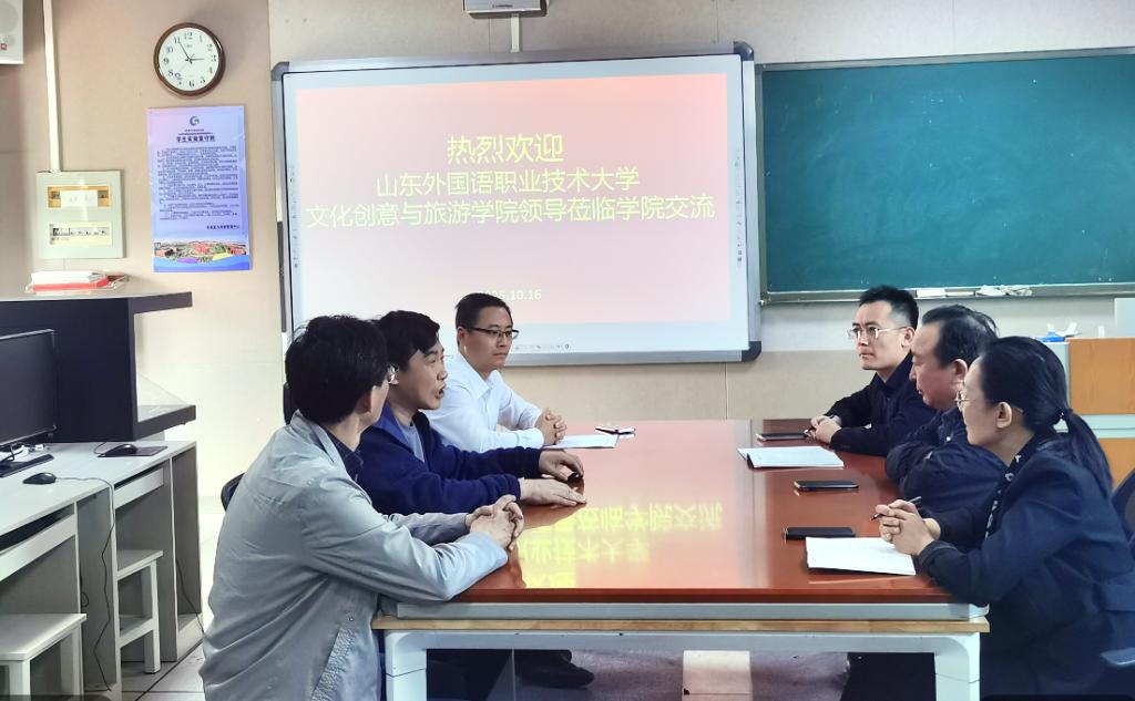 10月16日下午,山东外国语职业技术大学艺术创意与旅游学院代合治院长、刘萍副院长、办公室主任姚富晓一行莅临学院,就实验室建设与安全管理等工作进行交流。学院党委书记苏占兵、副院长吴军、院长助理李宝富及实验室主任杨雨蒙出席交流活动。